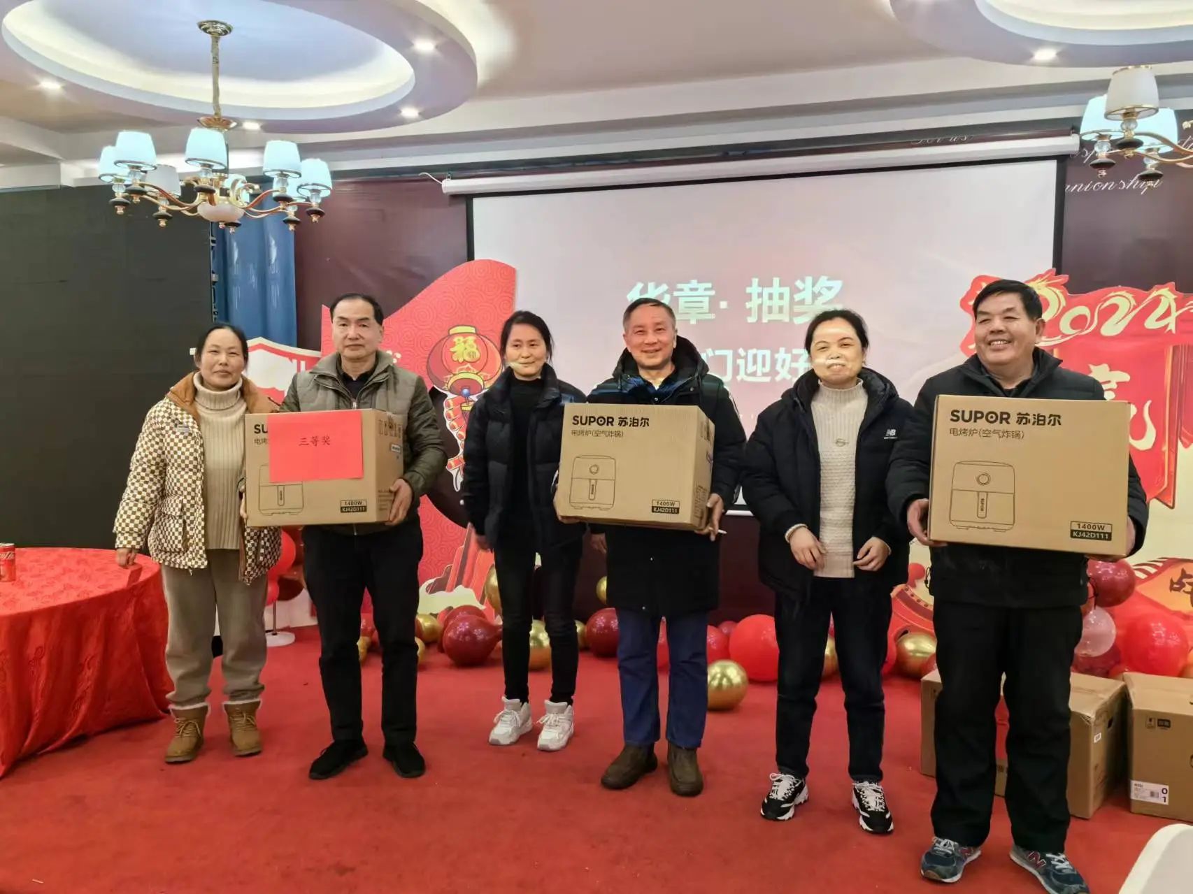 추첨을 통해 연말 경품이 연달아 추첨되어 놀라움이 가득했습니다! 에어프라이어, 전자레인지, 냉장고 등 푸짐한 경품이 차례차례 추첨됐고, 럭키드로우마다 환호가 쏟아졌습니다!